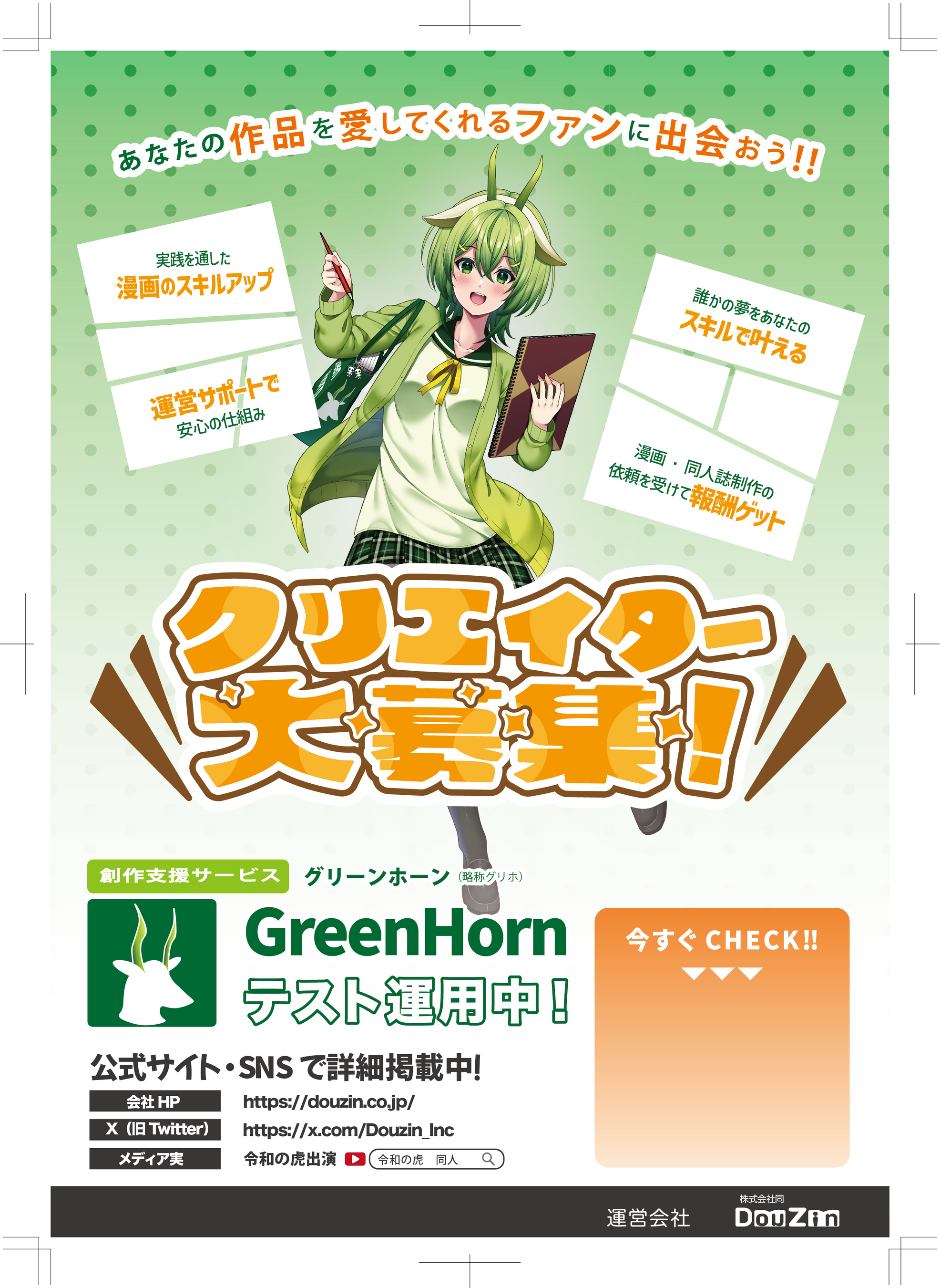 漫画/同人誌をマッチングで創る新サービス、『GreenHorn』が10月10日よりテスト運用開始