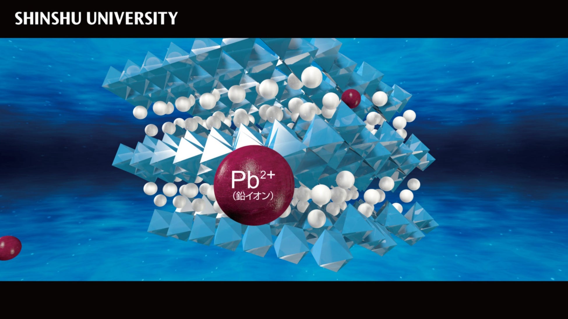 手嶋・萩尾・林・山田研究室が世界を先導する信大クリスタルの展示では、重金属を吸着する高機能結晶材料を紹介。来場者は巨大結晶パネルやインタラクティブ映像で、浄水技術のメカニズムを体感できます。