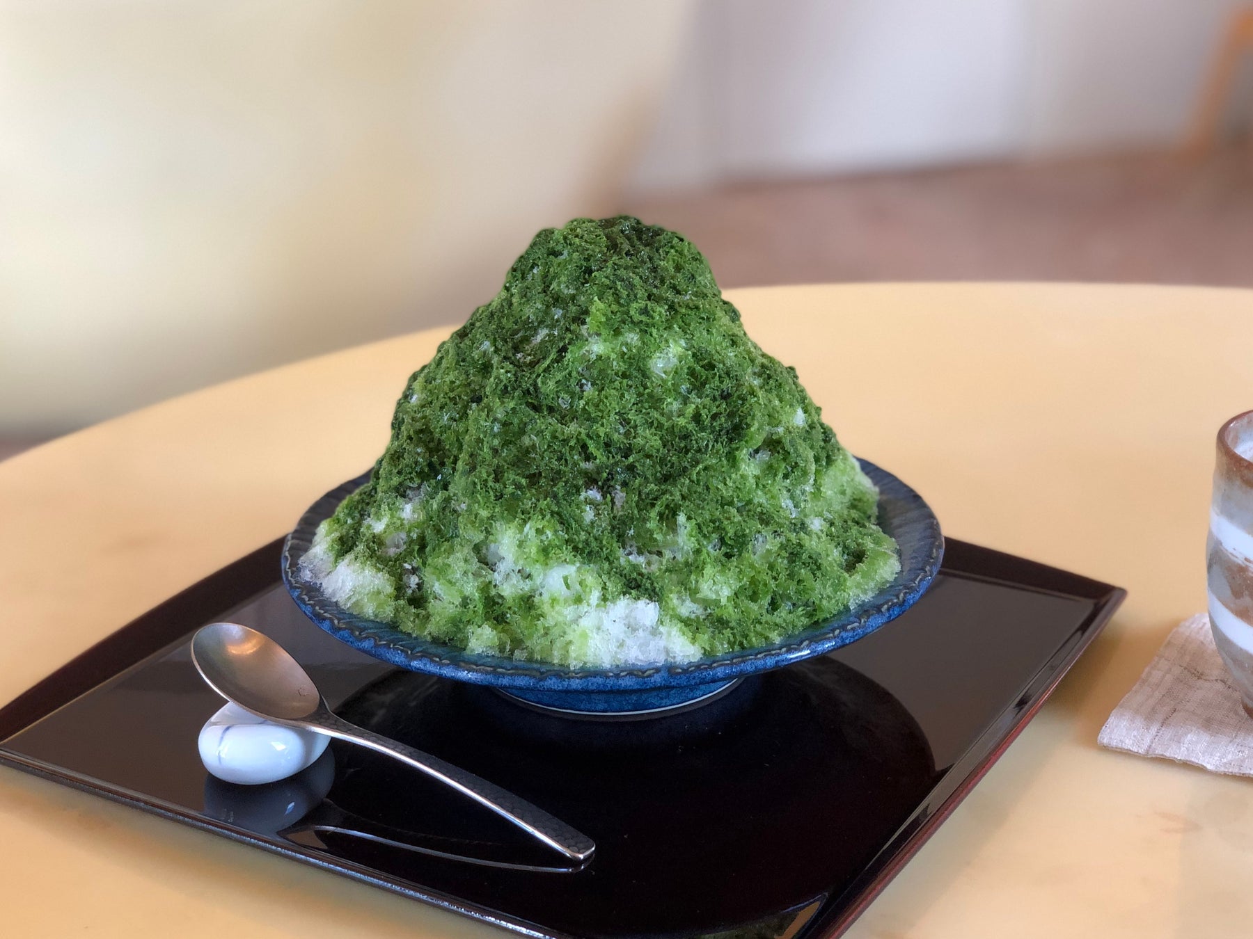 箱根湯本で創業75周年を迎えた老舗和菓子店「ちもと」。店舗に隣接するカフェ「茶のちもと」は、ちもとの御菓子を美味しいお茶とともに楽しめる小さな空間です。毎年夏に期間限定で登場する“かき氷”は、販売スタート前にお問い合わせをいただくことも多い大人気メニュー。定番の『お濃茶のかき氷』と『なめらかミルクのかき氷』2種に加え、新作1種のご提供が恒例となっています。