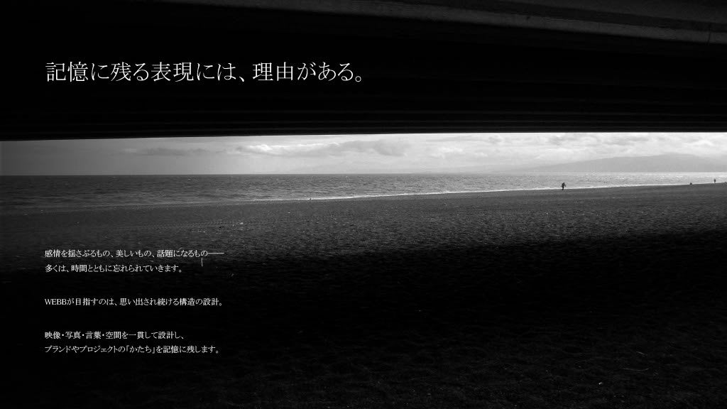 活動を続ける中で私たちが強く感じたのは、映像や写真といった“表現の一部”ではなく、ブランド全体の骨格を設計が求められているということ。 そこで、映画制作で培った設計力と、美術史・哲学の背景を活かし、「思い出され続ける構造」を企業・ブランドに提供する会社としてWEBBを立ち上げました。