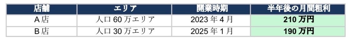 店舗エリア開業時期半年後の月間粗利