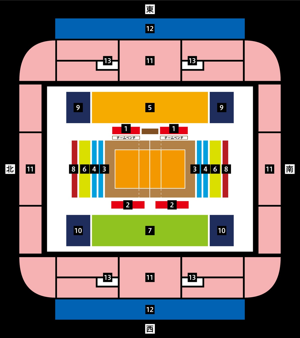 ※各試合左側に記載のチームがコートから見て左側のベンチ、右側に記載のチームがコートから見て右側のベンチでスタートします。