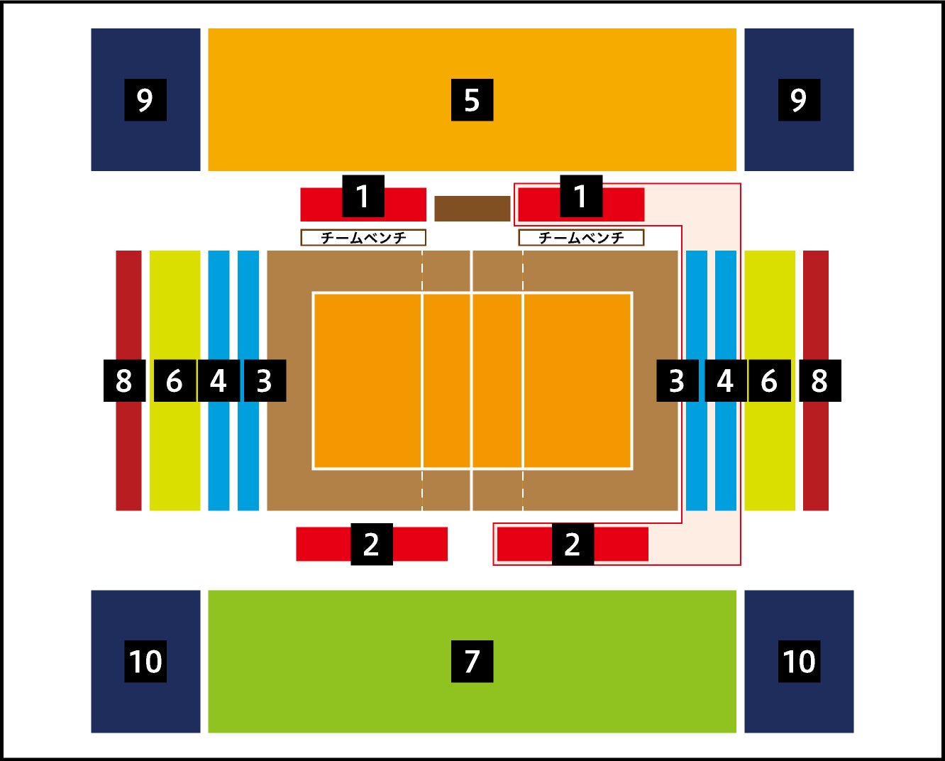 ※選手入場最前線エリア:選手の試合入場を目の前で見学できます。