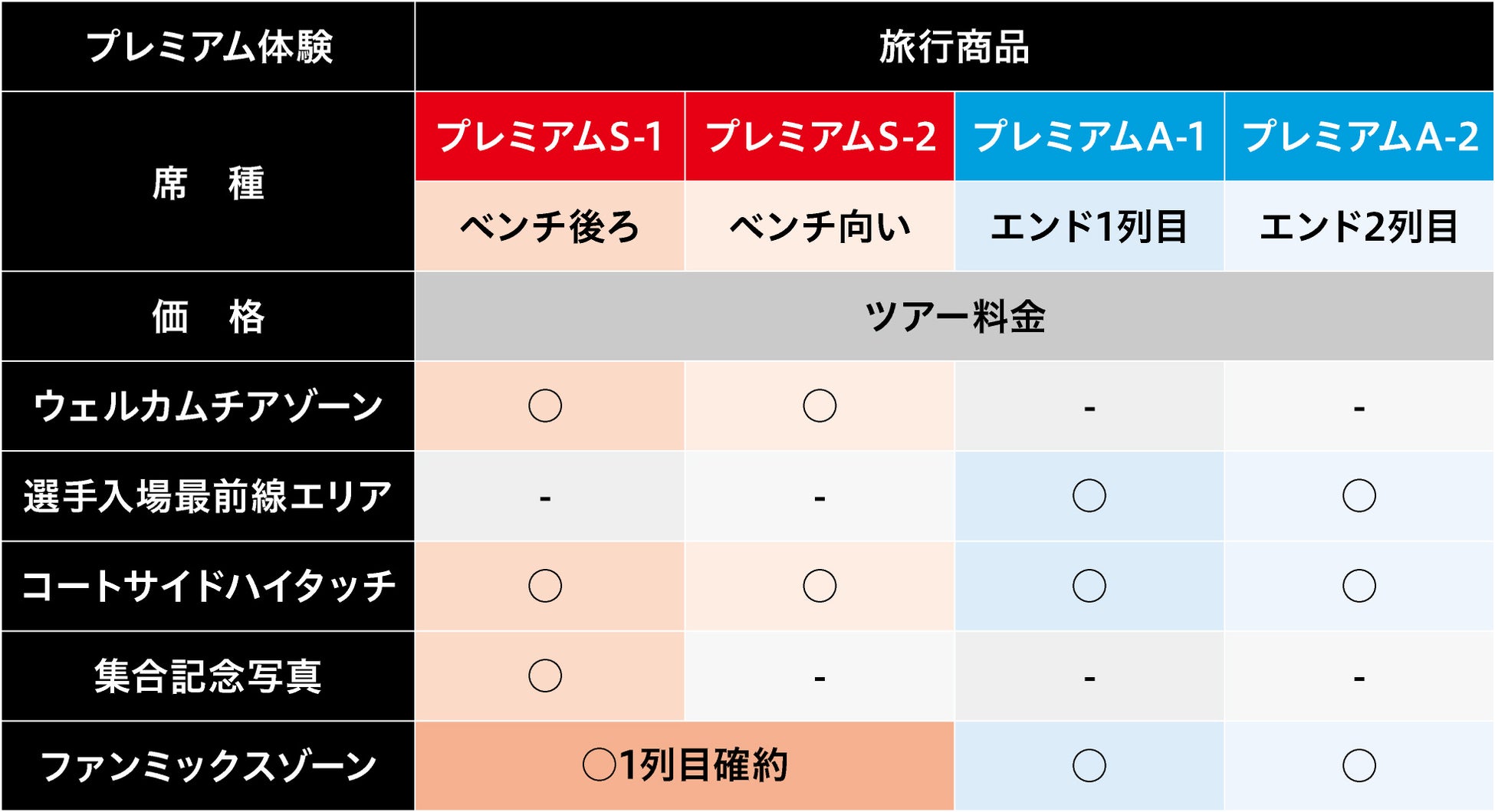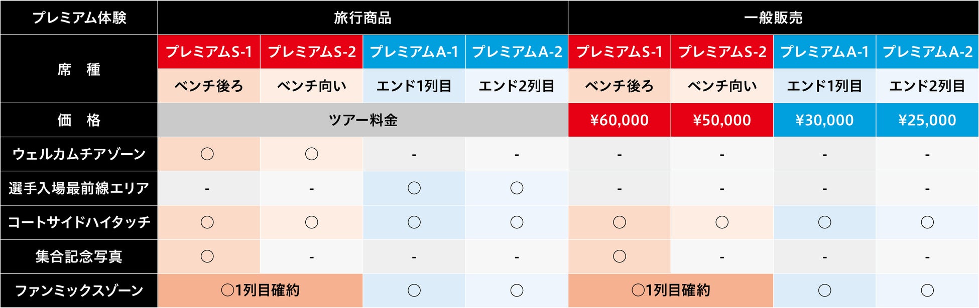 【プレミアムS-1、プレミアムS-2、プレミアムA-1、プレミアムA-2、車椅子席】