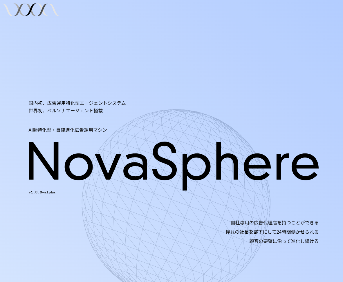 【世界初】“ペルソナエージェント”、ついに実装。国内初の広告運用特化型エージェント「Novasphere」、α版提供開始。―累計300億円運用実績のノウハウを、すべての企業へ
