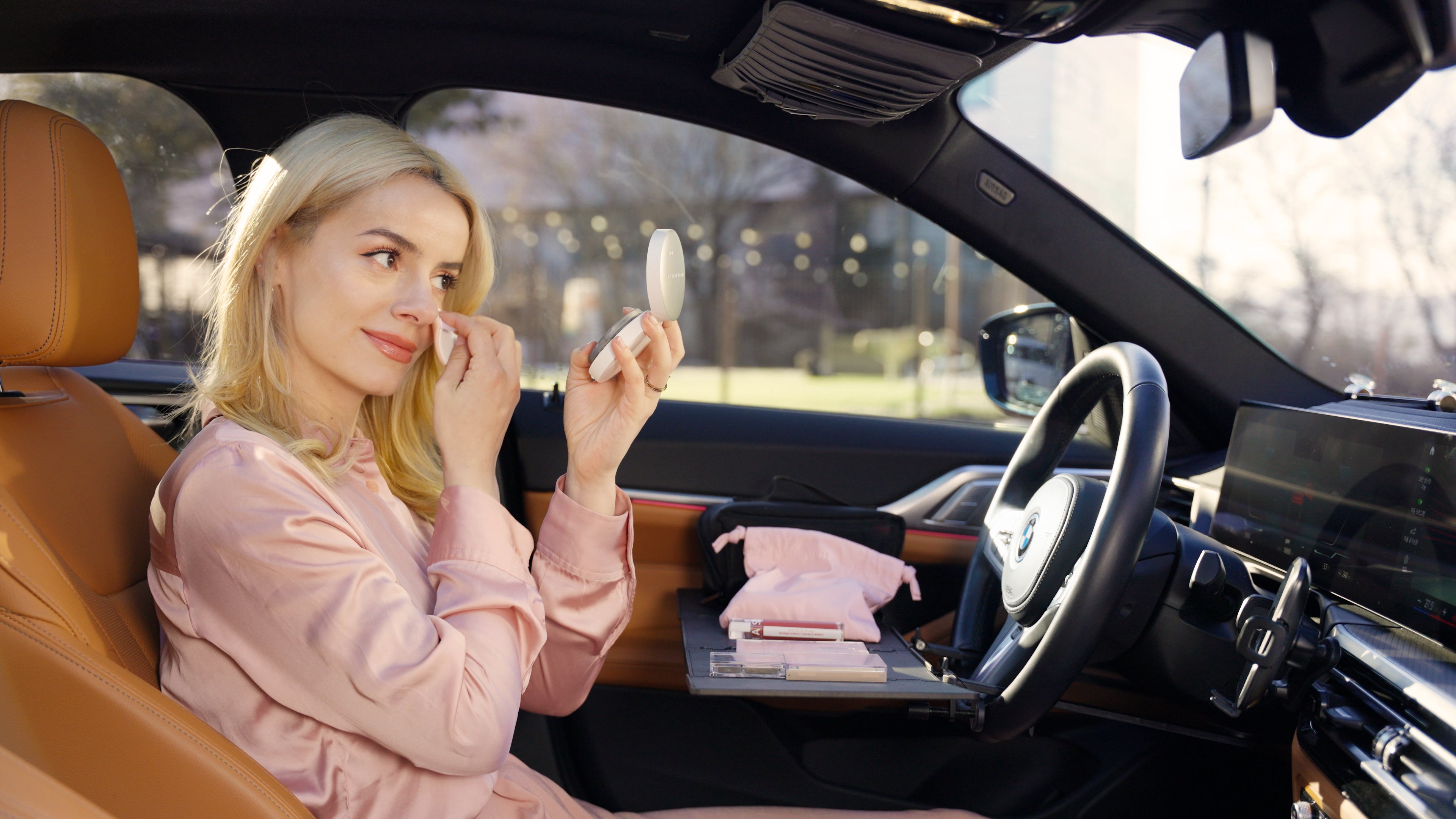 車内テーブルCaroは、車のハンドルに取り付け可能な折り畳み式テーブル。