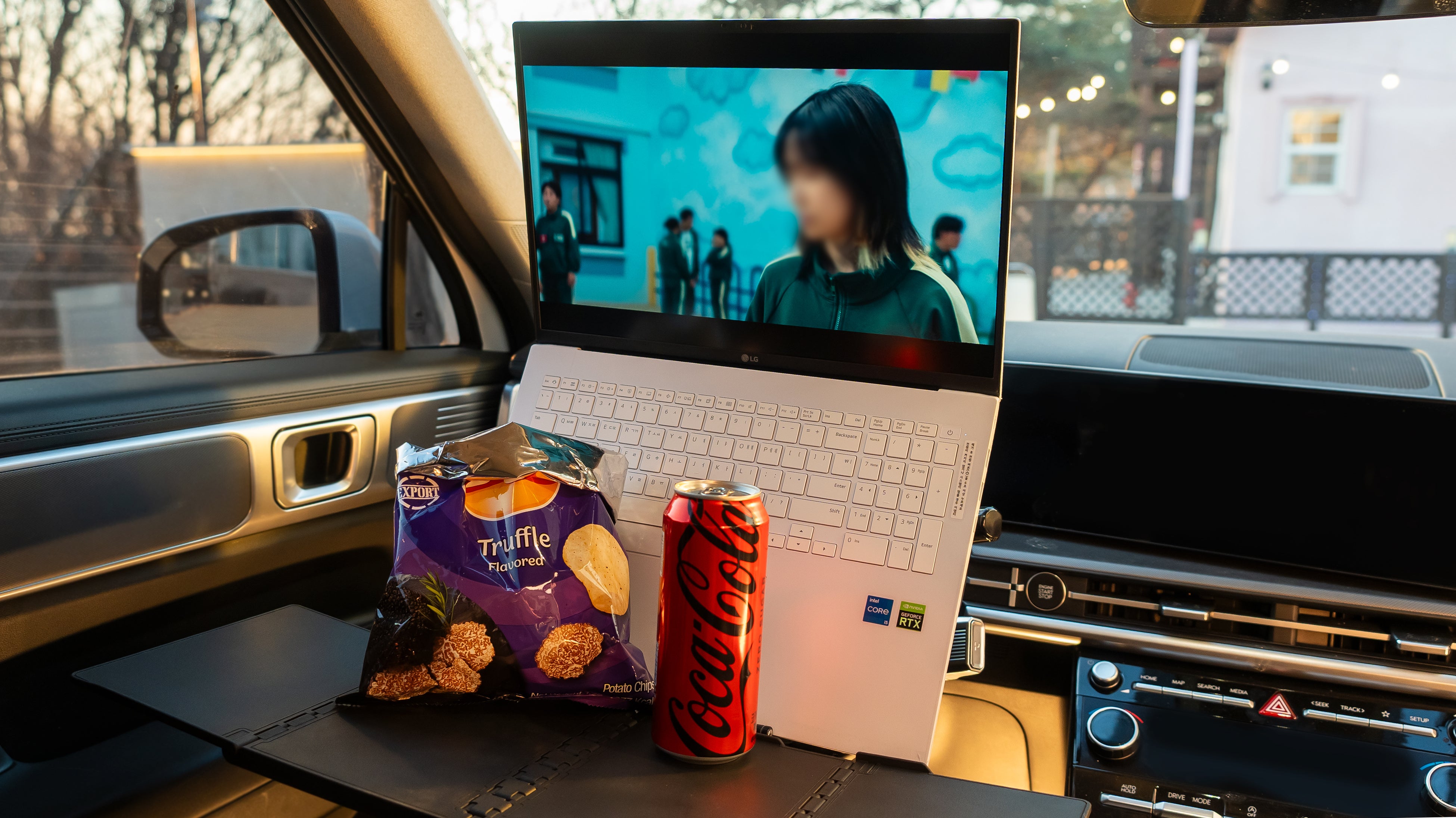 Caroの折り畳み式テーブルを広げれば、ゲーミングチェア級の車の「快適チェア」の前に、カウンター席のような広い作業空間が実現。また、テーブルには折り畳み式のツメが内蔵されており、PCを置いてもなおテーブルを有効活用できます。これを活用すると、PC・タブレットの2画面も可能です。