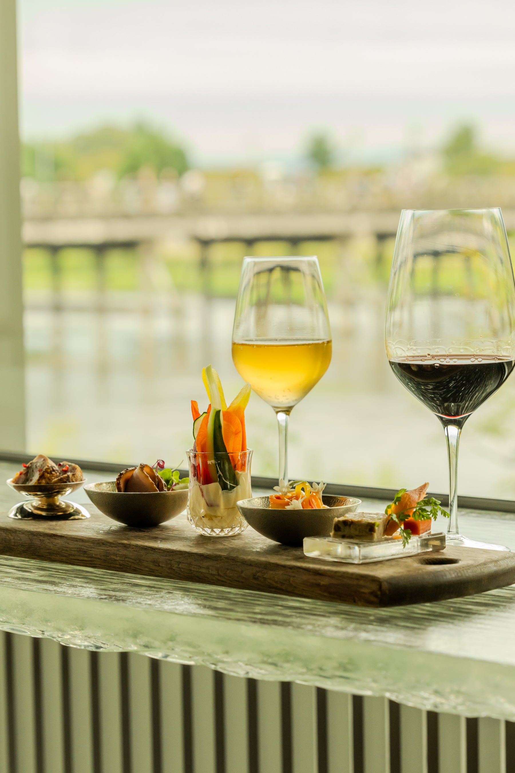 嵐山の自然とともに流れる一日を、五つの美しい時間で味わう、「季節と感性にまかせて、ひとときの自由を。」をテーマに、チェックイン後のティー&スイーツ、夕どきのイブニンフカクテル&カナッペ、ディナー、そして翌朝の朝食からランチまで、五つの時間帯に寄り添う多彩な味わいをご用意しました。ご宿泊者様限定のオプションとして、予約や時間に縛られず、心の赴くままに嵐山の自然とともに過ごす“余白の愉しみ”をご提案します。