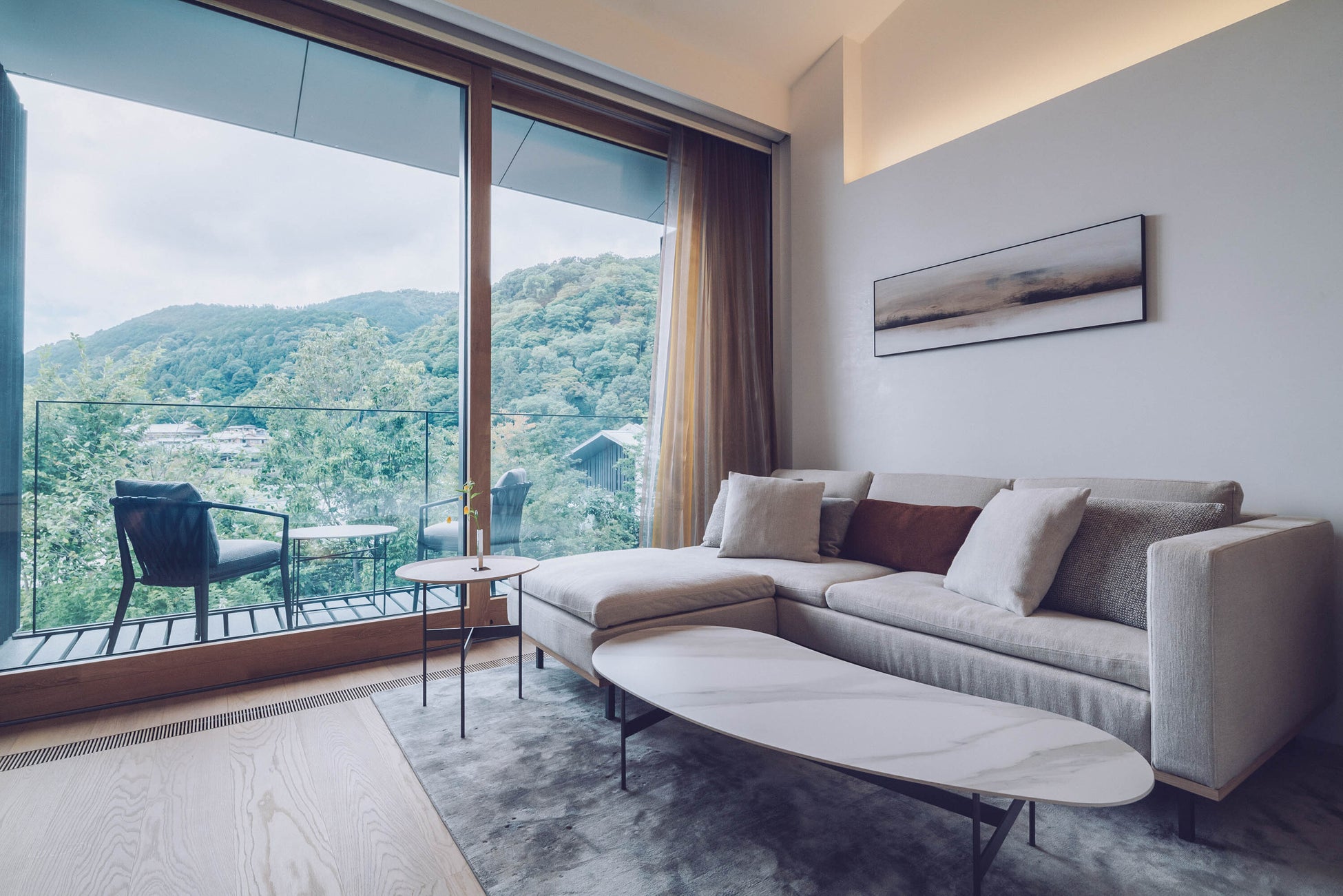 渡月橋を望む桂川のほとりに佇む「MUNI KYOTO」は、洋の美学と和の感性が調和するスモールラグジュアリーホテルです。