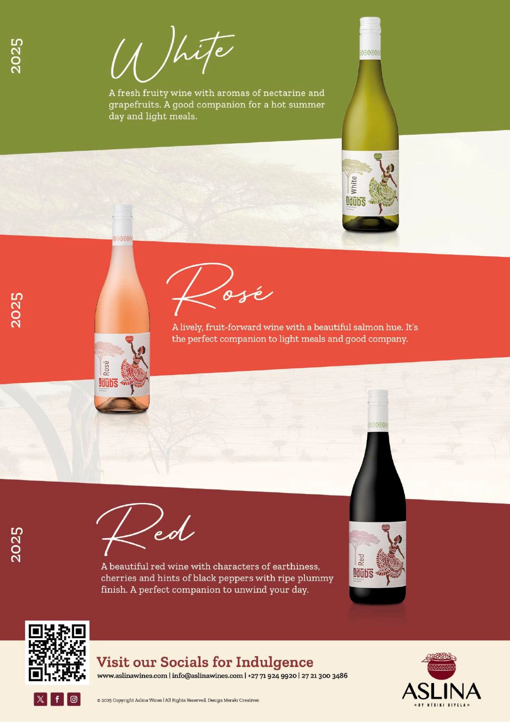 「アスリナ」は、南アフリカで黒人女性として初めて自らのブランドを立ち上げたNtsiki Biyelaヌツィキ・ビエラが醸造するワインブランドです。ブランド名「アスリナ」は、彼女に多大な影響を与えてくれた祖母の名前に由来します。ヌツィキ氏は、アパルトヘイト後の南アフリカにおいて、ワイン産業における先駆者として数々の困難を乗り越えながら創造性あふれるワインづくりに挑戦し続けています。彼女がつくり出すアスリナは、現在アメリカ、イギリス、カナダ、ヨーロッパ各国と14ヶ国に輸出されるまでになりました。性別、人種を超えて進化している南アフリカのワイン業界で、アスリナは、そんな南アフリカの輝かしい未来を象徴するワインのように、多くの共感を呼んでいます。 日本では、㈱アリスタ・木曽により2019年から輸入販売されています。