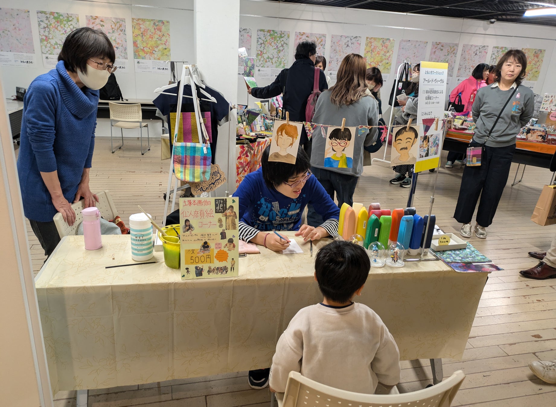 会期中は、誰もが楽しめる参加型のイベントやアートグッズ販売も日替わりで実施します。ともいきアートの作者と一緒に大きな作品を描いたり、花文字のライブペインティングやねこブローチ・缶バッジなどのアクセサリーづくりも行います。
