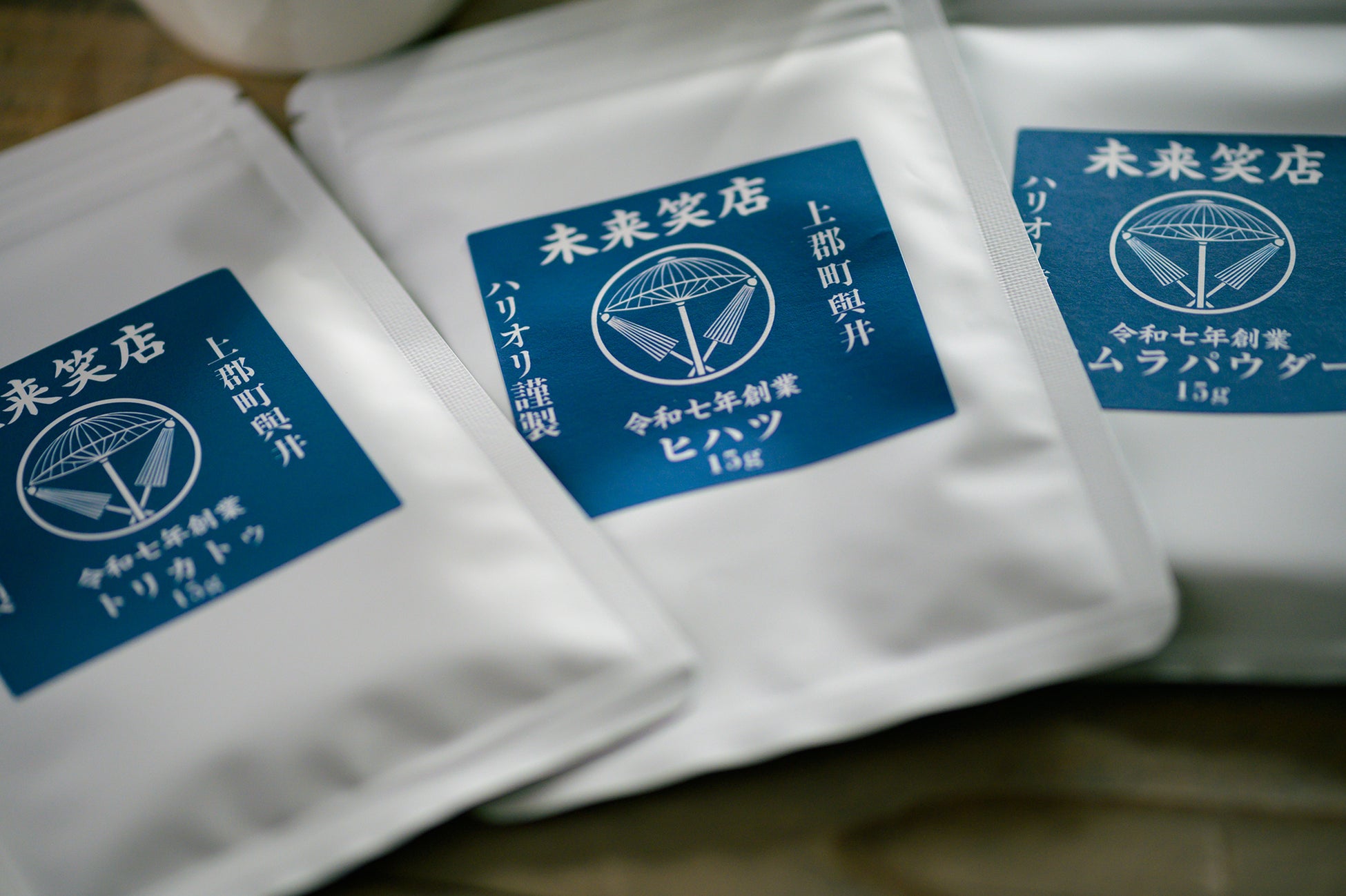 オリジナルブランドの未来笑店のアーユルヴェーダに関連するスパイスを販売。