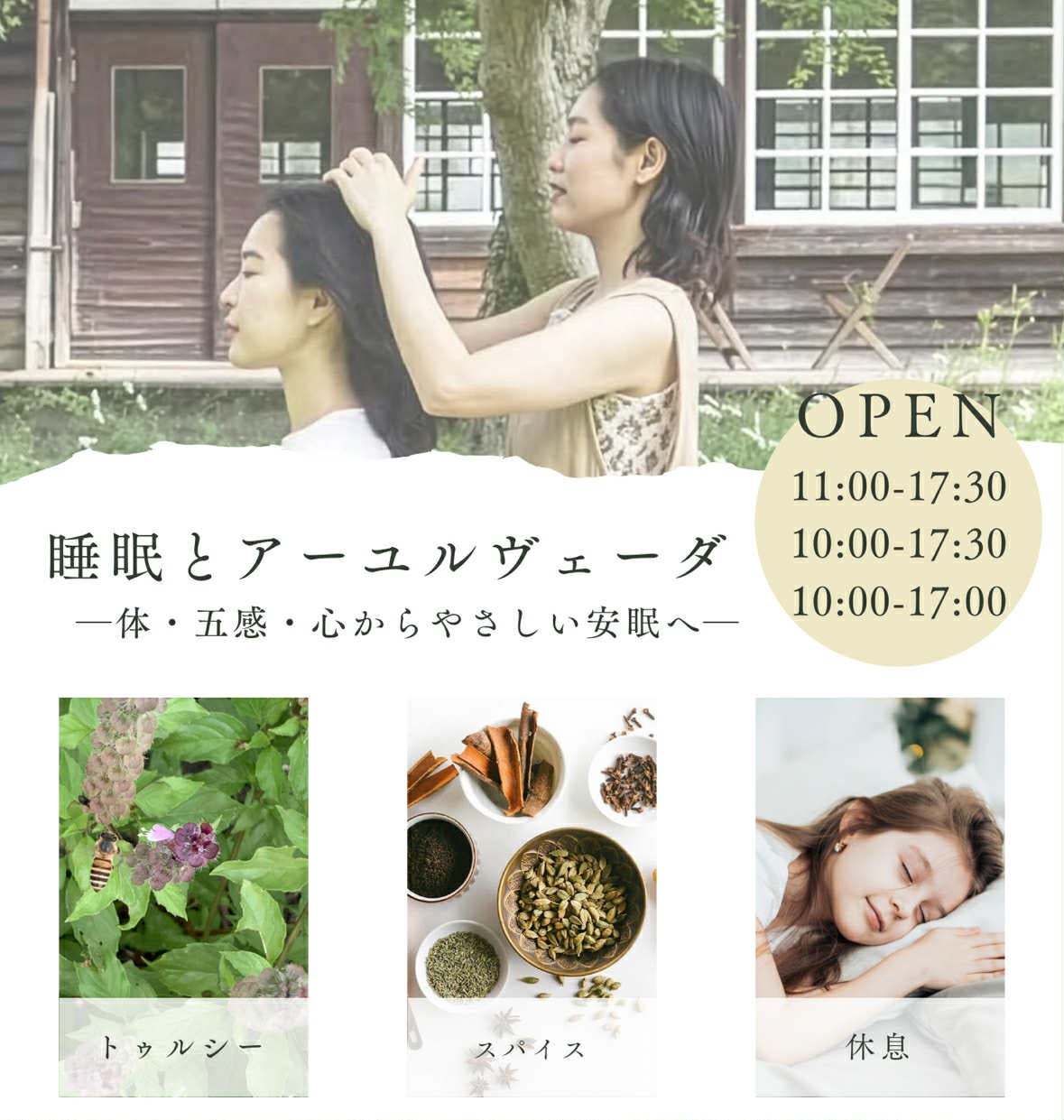 今回、当社は「睡眠とアーユルヴェーダ」をテーマに、2つのブースで体験を提供します。