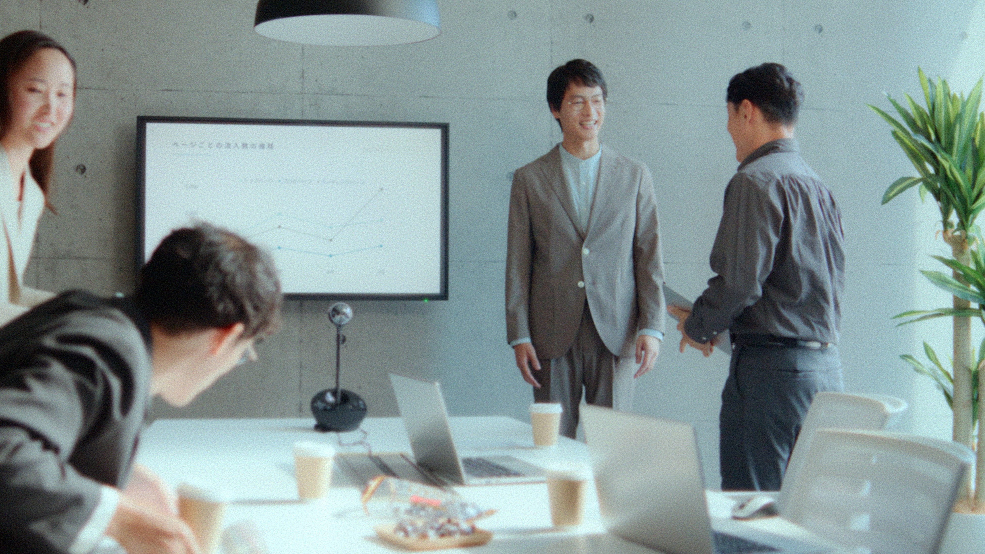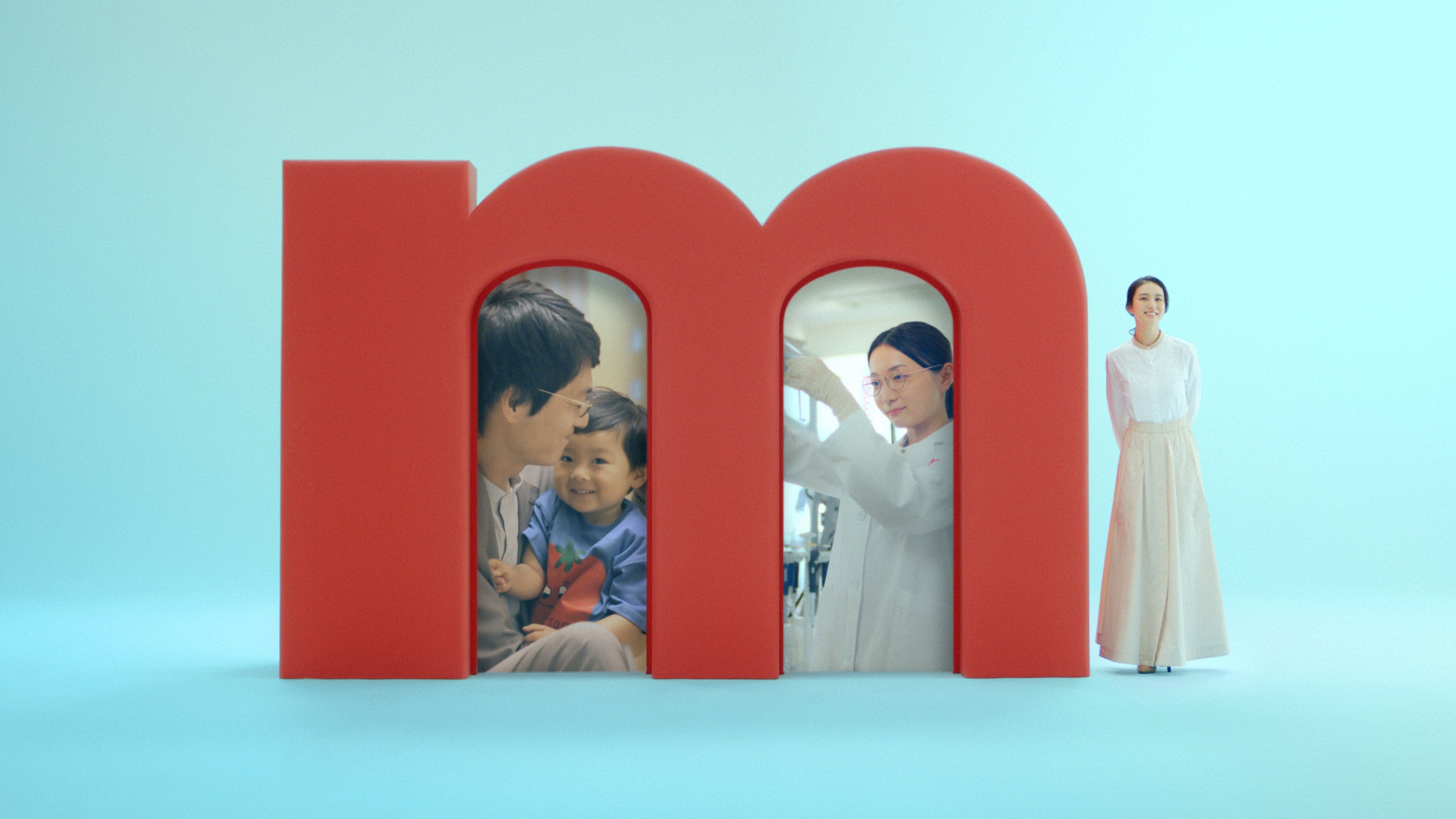 人々に寄り添い、笑顔を生み出す当社の企業姿勢を伝えるとともに、刷新したmeitoのロゴエレメントを画面フレームとして活用し、食品と化成品という2つの事業が「おいしさ・たのしさ・健康」を届ける存在であることを、視覚的にわかりやすく記憶に残る形で表現します。企業名「meito」と当社の柱である2事業の印象を強く残す構成です。