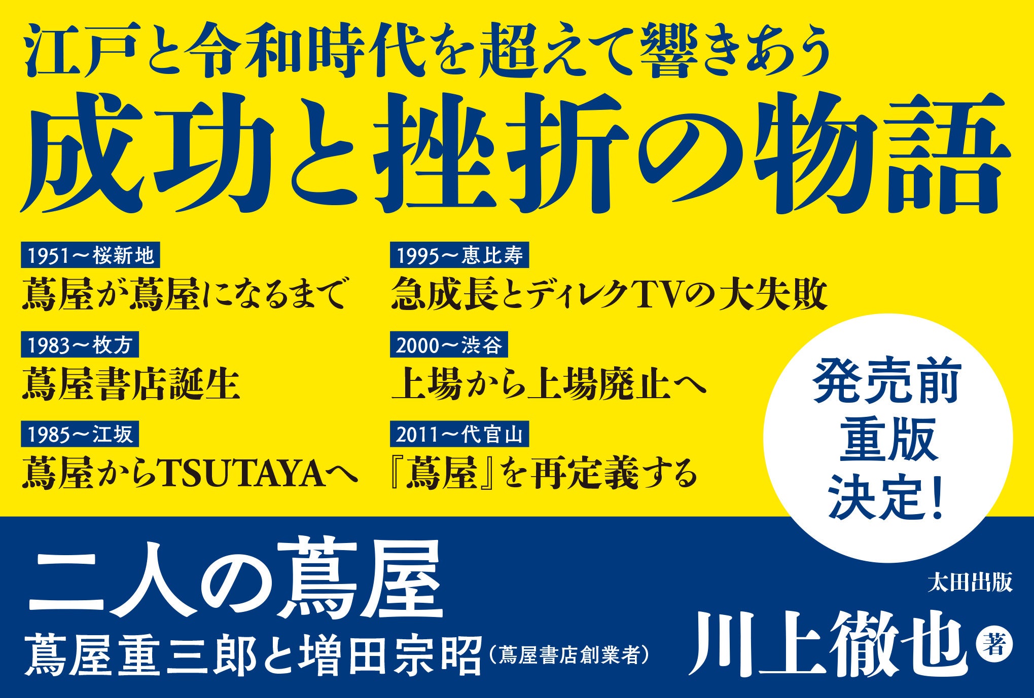 (株)太田出版は、川上徹也氏による『二人の蔦屋 蔦屋重三郎と増田宗昭』を2025年9月18日(木)に刊行。蔦屋書店創業者・増田宗昭氏と、江戸の名版元・蔦屋重三郎には、驚くほどの共通点があることを指摘。その軌跡をたどり「文化を届ける」ことの意味を時代を超えて探っていく本書は、発売前に重版となり、すでに「PRESIDENT Online」や「新文化」でも取り上げられ、話題となっています。