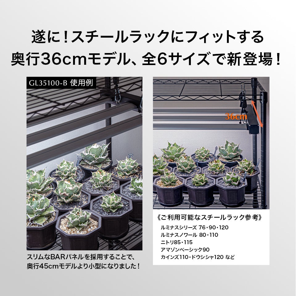 もともとこの植物育成ライトは、自社のアガベ管理用に特注した非売品でしたが、Instagramで紹介したところ「使ってみたい」という愛好家の声が多数寄せられたため、商品化したのが2025年3月に発売したのが、比較的大型の「GL45シリーズ」です。そして、さらに室内の育成環境にフィットしやすいサイズにリサイズし、第二弾として今回発売を開始したのが、「サイズのバリエーションの多いGL35シリーズ」です。
