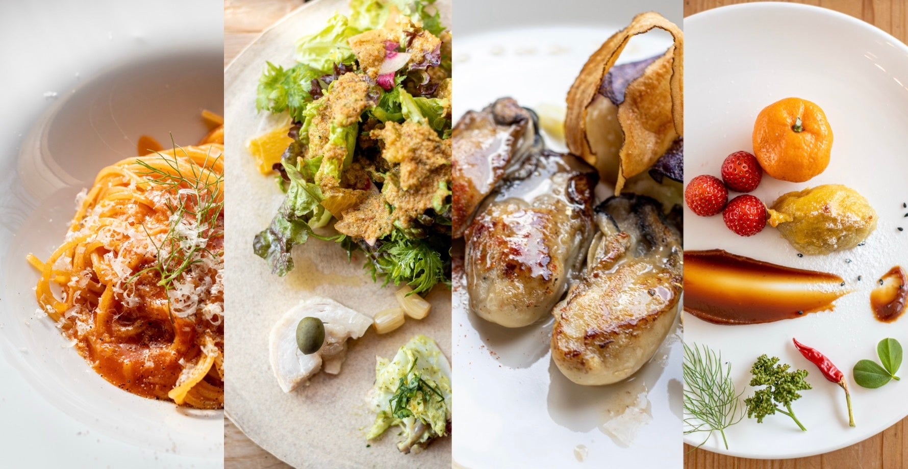 この日の案内役は、江田島の美味しいを知り尽くす腕利きの料理人たち。それぞれこだわりの食材・料理で江田島という地域と向き合う彼・彼女らの、献身的とも言えるその姿勢からは、“土地の記憶を心に刻んでいただきたい”。という強い想いが感じられます。開催にあたっては、食材や調理法など各シェフの秘訣・秘伝を極めてオープンに語らい、江田島ならではのガストロノミーと、一夜限りの特別なコースが誕生しました。ドリンク類も地ビールや島のお酒などのほか、柑橘類など、こちらも江田島産にこだわったソバキュリアスな飲み物をご用意。お料理にぴったりのペアドリンク各種をお楽しみください。
