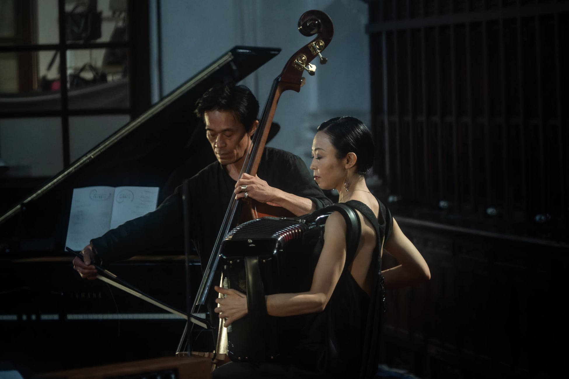 アコーディオン奏者・生駒祐子、コントラバス奏者・清水恒輔による音楽。世界各地の多様な文化との出会いから紡がれる楽想が「旅へいざなう音楽」とも評される。 近年は、京都の寺院や博物館、とある海辺の廃墟、マテーラの修道院跡、リスボンの工場跡など、街の歴史や文化を内包する場での演奏会が好評を博す中、作曲・演奏を通して舞台・アート作品の音楽や「your voice」「Charade」等のアルバムを発表。 今回は「Bricolage 17」を舞台に、空が茜色に染まる夕暮れから、やがて夜空に星々が瞬く時間まで、五感を包み込む音の旅へと誘います。