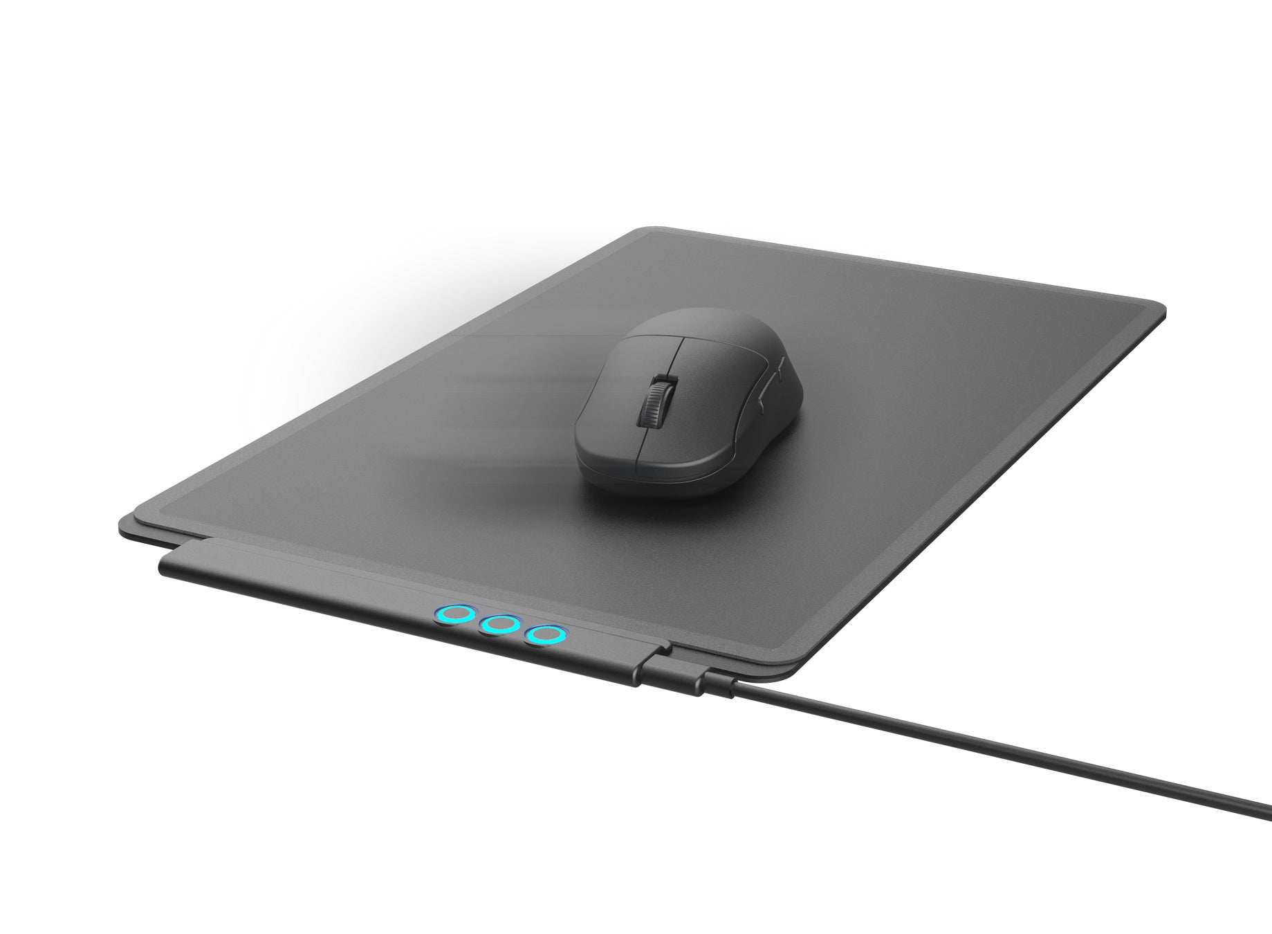 マウスデバイスはマウスパッドからリアルタイムに給電され、バッテリーレスでありながらワイヤレスで動作します。そのため、非常に軽量ながらワイヤーやバッテリーを気にせず、長時間プレイもストレスなく対応できます。