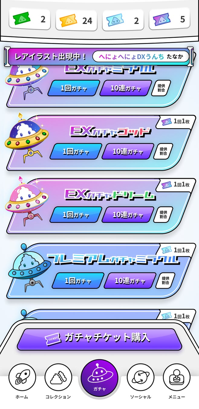 「ガチコレ」では、ユーザーが購入するチケットに応じて、体験できる演出の品質が大きく異なります。