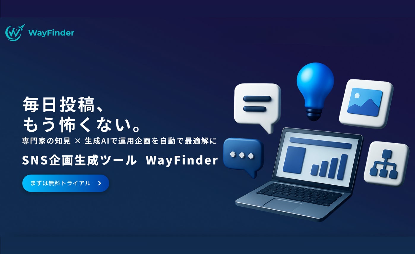 SNS運用の常識を変えるAIが「毎日投稿」と「コスト削減」をサポートするサービス WayFinder スタート