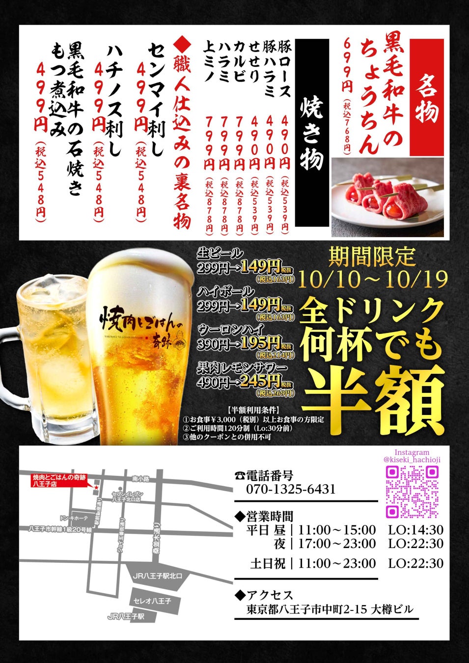 厳選黒毛和牛を圧倒的安さで提供!「焼肉とごはんの奇跡」10月10日(金)八王子に進出!