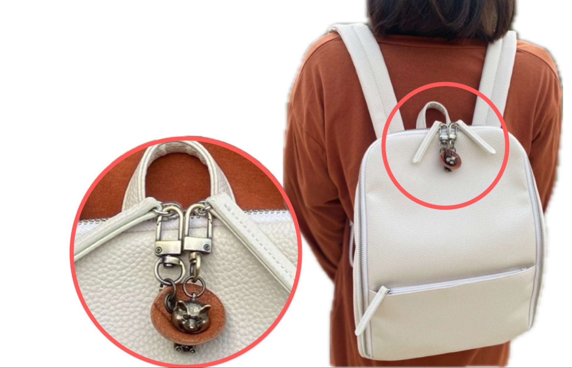 こうした体験から、日常的にバッグに取り付けても違和感がなく、むしろバッグの魅力を高めながら、意図せず開いてしまうファスナーの開き防止やスリ対策に役立つアイテムを作りたいと考えるようになり「ファスナーチャーム®エリザベスワンちゃん」が誕生しました。