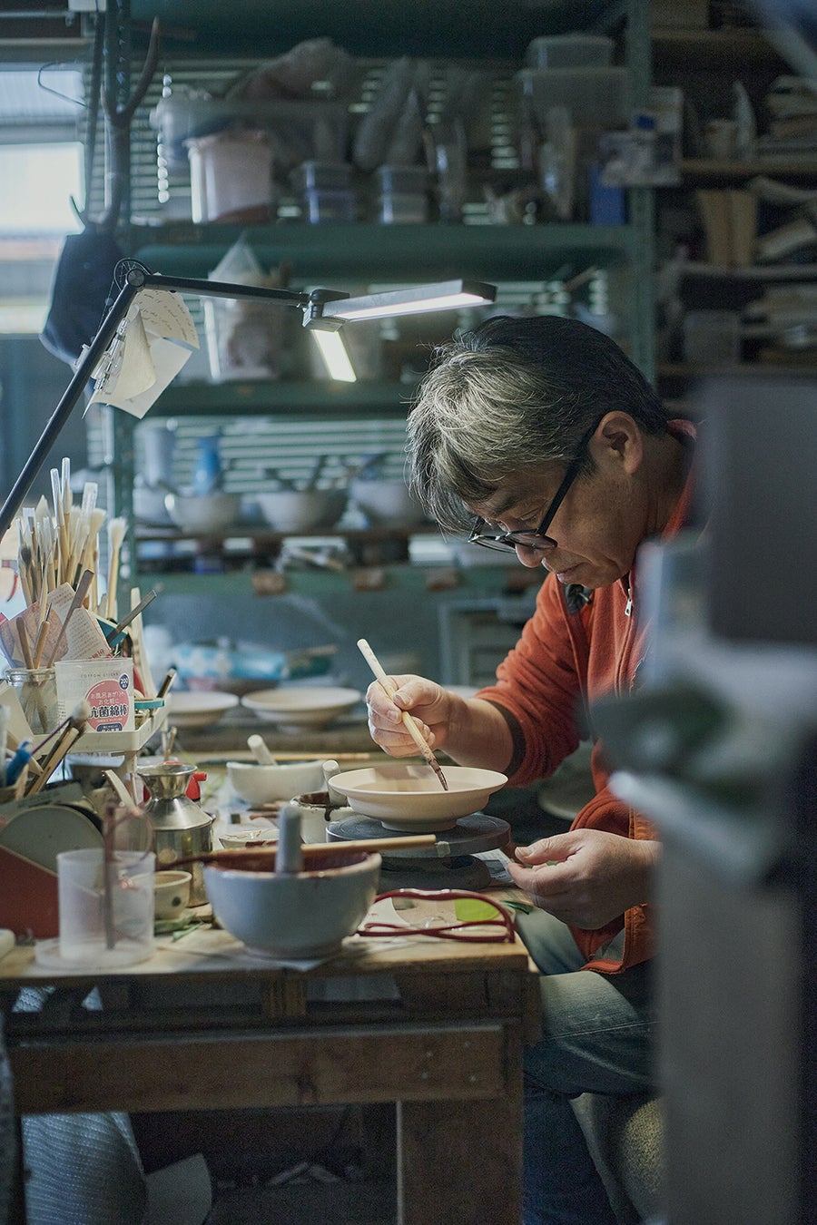 『TOU』が大切にしているのは、「作家」ではなく「作り手」としての誇りです。作家が名前を出して売るのに対し、作り手はあくまで地場産業の分業の一つのプロフェッショナル。その表現は控えめでありながら、料理人と同じく、“主役は素材”という思いを込めて器をつくっています。