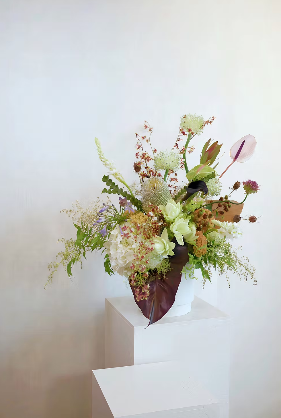 個展や開業祝いに最適なスタンド花、長寿のお祝いにふさわしい胡蝶蘭、また日常を彩る季節のアレンジメントまで、プライベートにもビジネスシーンにも、幅広い用途に対応します。