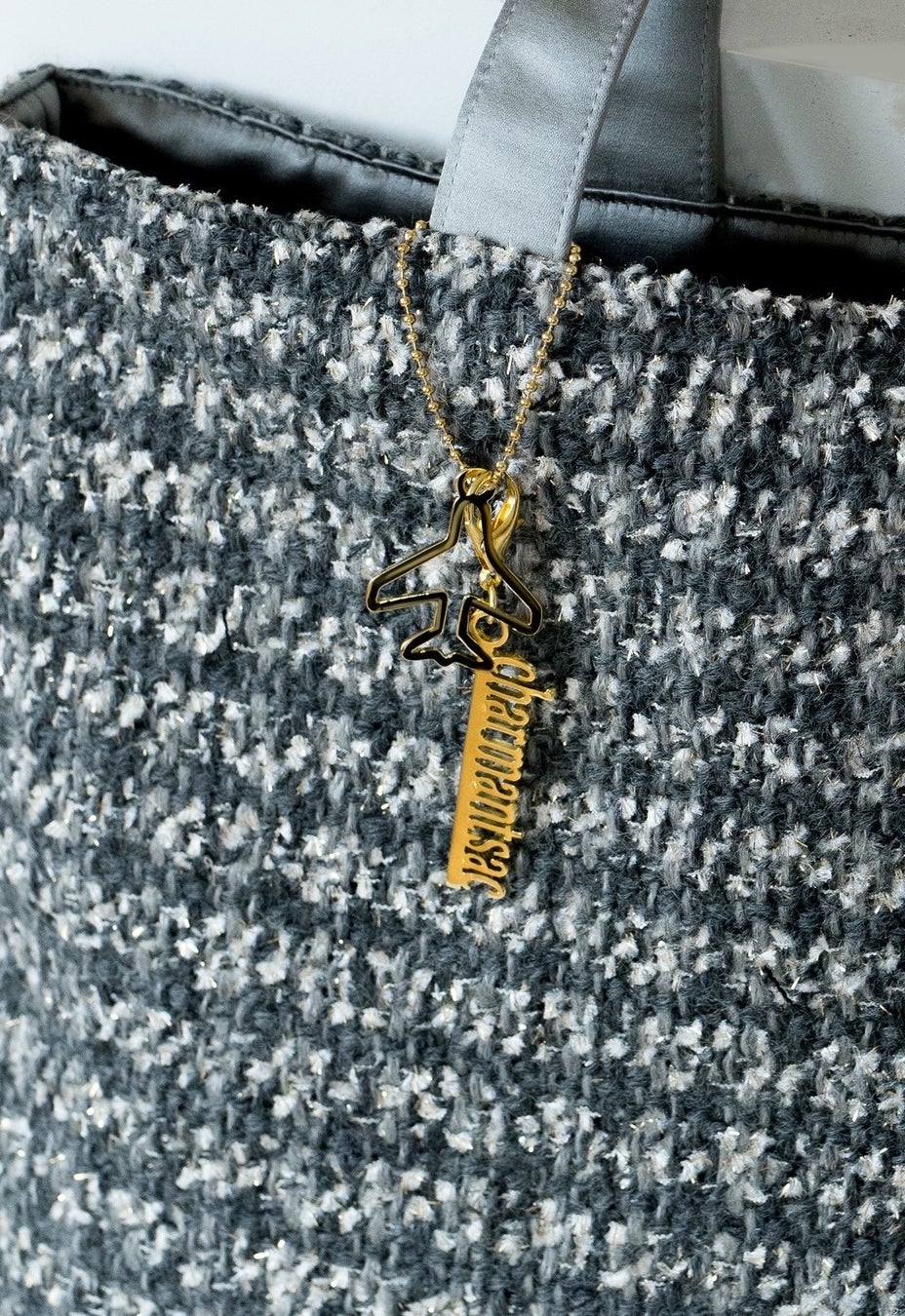限定生地を使用、ブランドチャームにプラスして飛行機モチーフのゴールドチャームも付属
