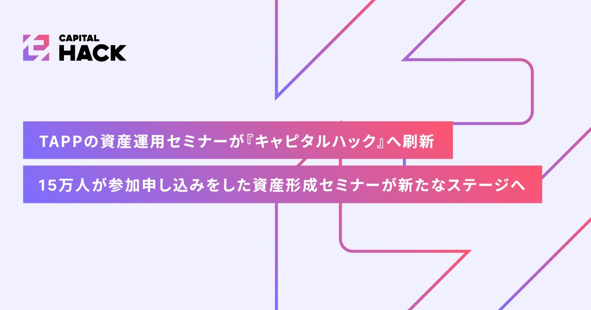 株式会社TAPP(本社:東京都港区、代表取締役:山地 学、以下TAPP)は、2025年10月、参加申込者15万人を突破した「クレイジーマネーセミナー」から、『キャピタルハックセミナー』としてリブランディングいたします。『キャピタルハック』は、Capital(資産)とHack(工夫・効率的な解決)を掛け合わせたコンセプトです。「資産家とは多くの財産を持つ人ではなく、資産の増やし方を知っている人」という思想を体現しています。