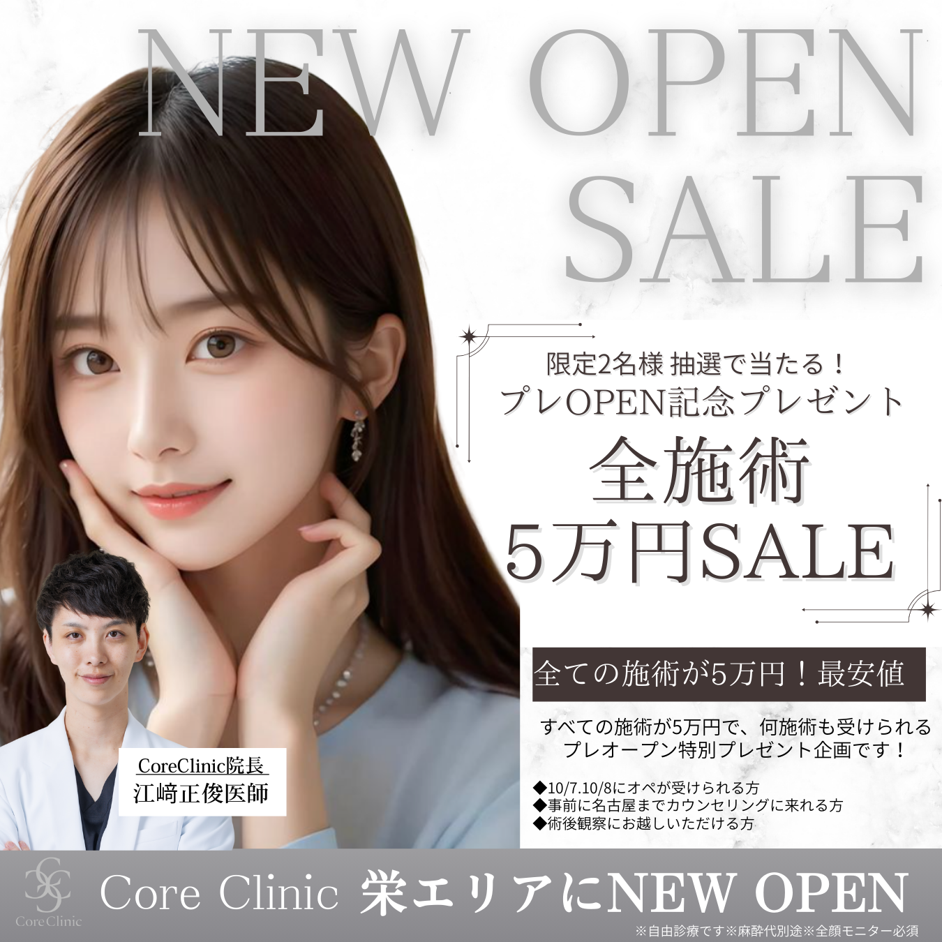 ※2)抽選2名様、2025/10/7または2025/10/8に施術を受けられる方、事前に名古屋へカウンセリングへ来れる方、術後観察にお越しいただける方