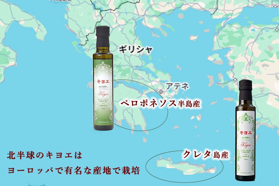 新商品のグリーンラベルは、ギリシャ最大産地であるペロポネソス半島で作っています。この2大産地は、ヨーロッパでも有名な産地です。
