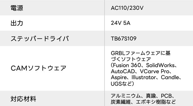 木材やアクリルはもちろん、真鍮や樹脂などの多彩な素材に対応。デスクに置けるコンパクトなサイズながら、DIYやハンドクラフト制作に最適な本格派CNCマシンです。