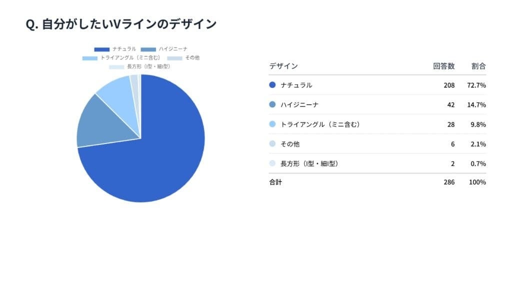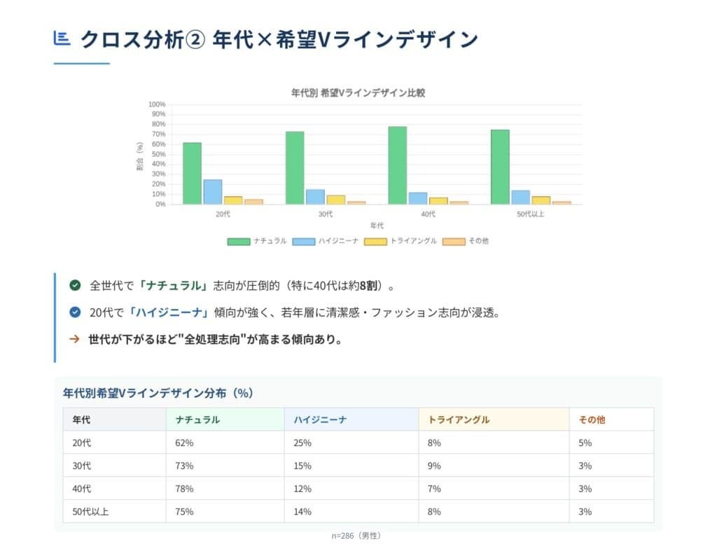 20代では「ハイジニーナ」を選んだ割合がやや高く、清潔感やファッション性を重視する若者の嗜好が反映されています。