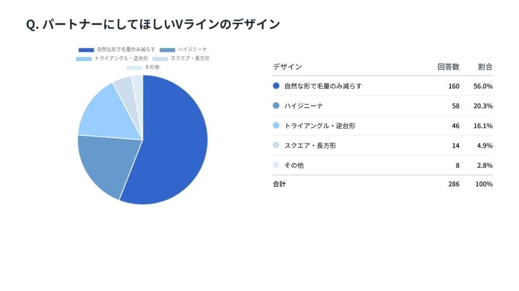 パートナーに求めるデザインも「ナチュラルに毛量を減らす」が過半数を占めており、自然さを大切にしつつ清潔感を重視する傾向が見られます。