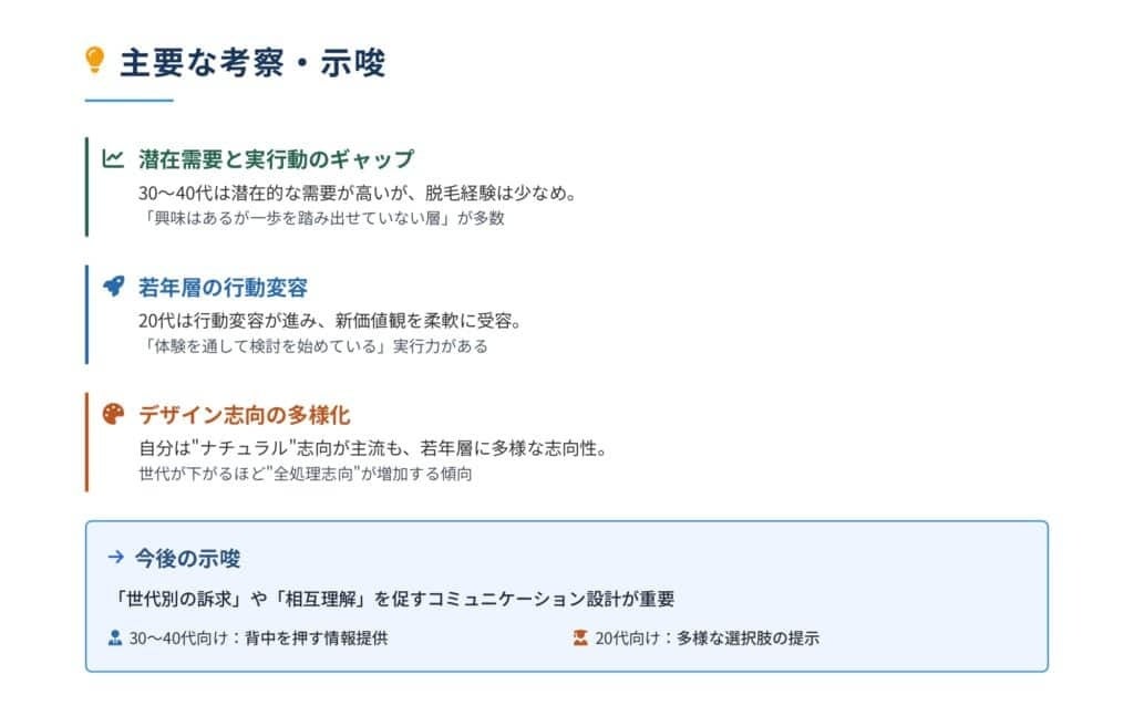 「30〜40代は潜在需要が高く、20代は行動力がある」という世代ごとの違いが鮮明に