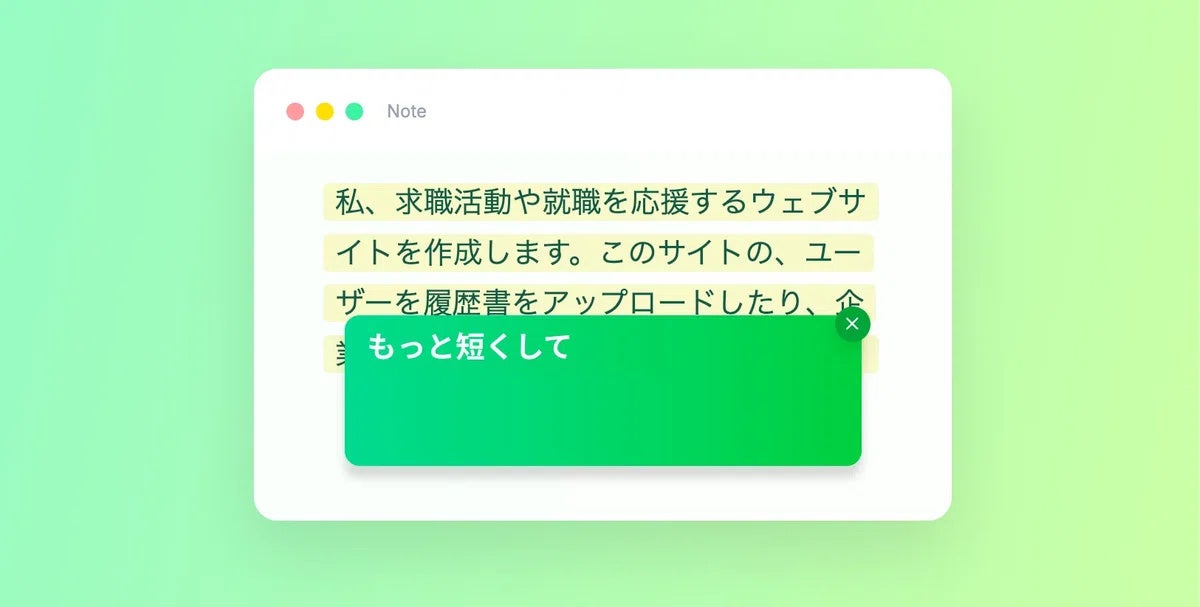 一方で、実際の業務では「高機能であること」だけでなく、普段の作業の中で自然に使えることが重要です。たとえば、メールの一文だけをやわらかくしたいとき、チャットの表現を少し整えたいとき、資料の説明を短くしたいときなど、必要なのは大がかりな生成ではなく、いまある文章への素早い修正であることが少なくありません。