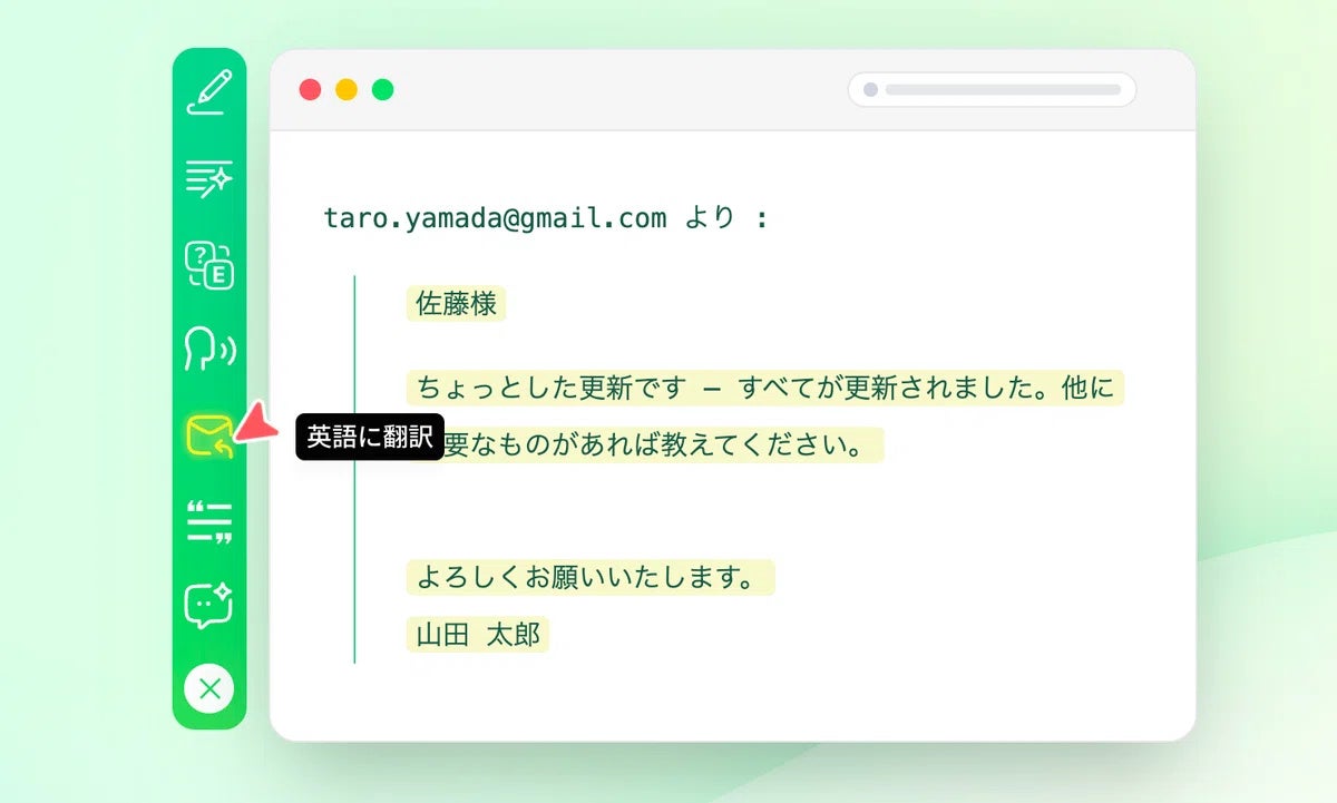 milcは、メール、チャット、資料作成、メモ作成など、日々の文章業務で発生する「少し直したい」「もっと丁寧にしたい」「短くしたい」「英語にしたい」といった修正を、今開いている画面のまま行いやすくするアプリです。選択した文章をその場で編集できることに加え、近年注目が高まっているAI音声入力機能にも対応しており、「話して書く」ことも、「話して直す」ことも、1つのアプリで行えます。