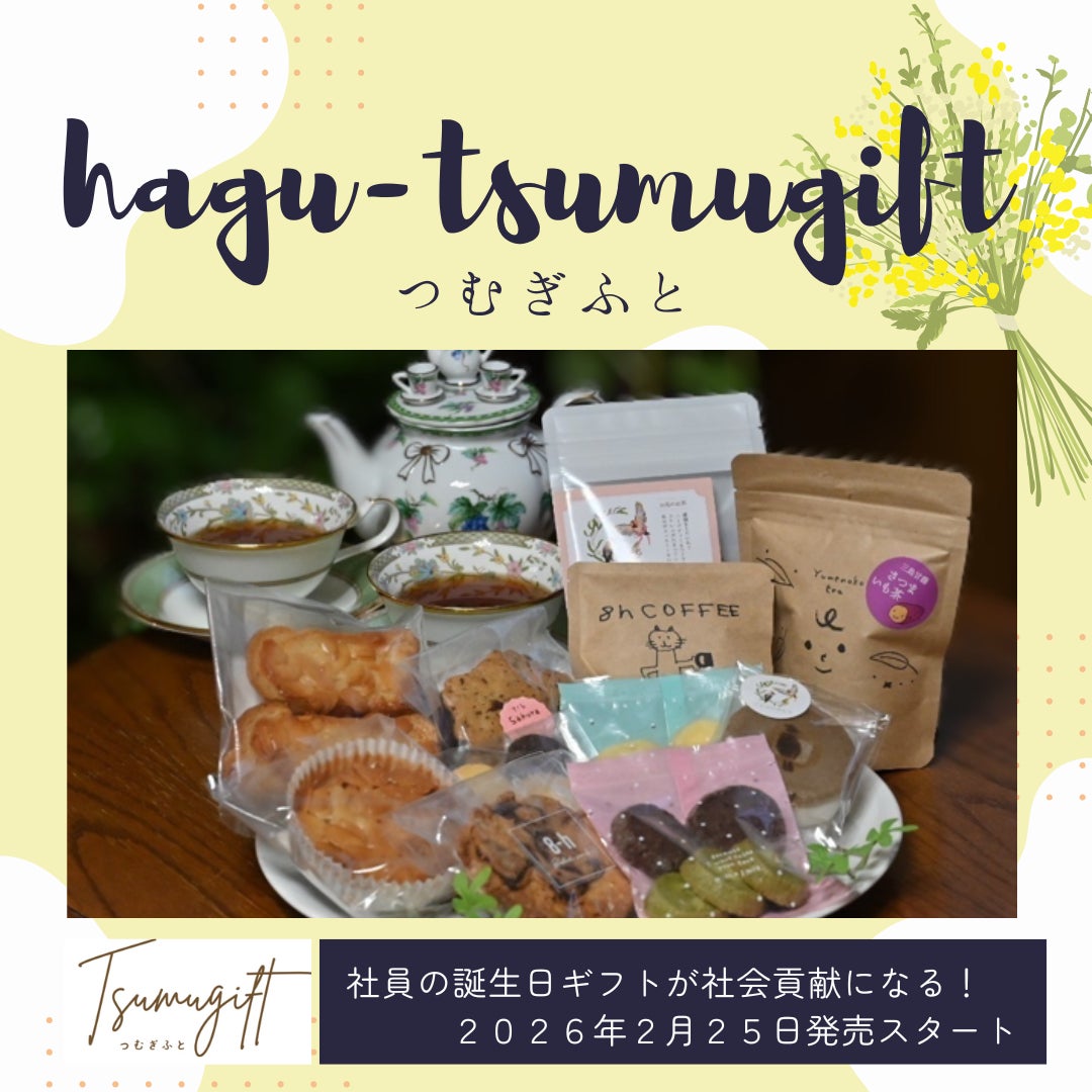 誕生日ギフトサービス「hagu-Tsumugift(つむぎふと)」は、自社で就労支援事業を運営せず、行政主導でもない立場から、企業の福利厚生を通じて、障がいのある方の就労支援につながる“販路”を創出する非行政型モデルです。