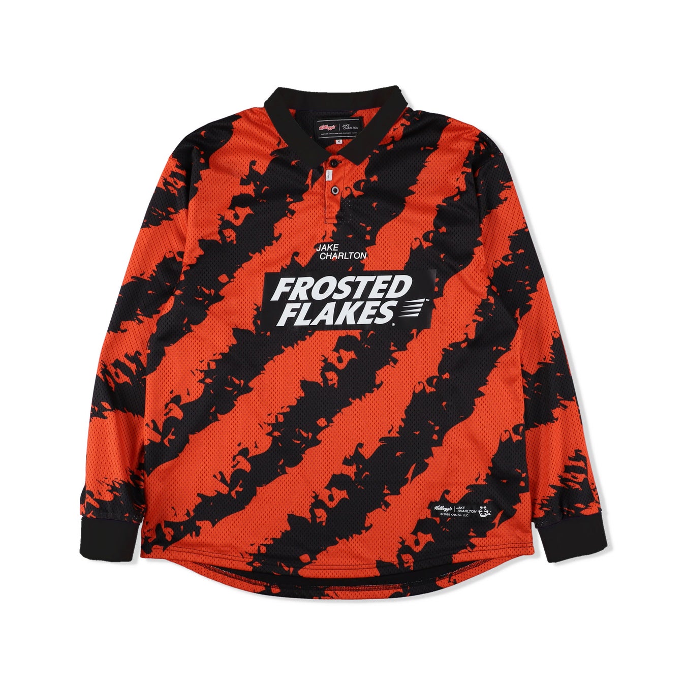 Kellogg'sのアイコンであるトニー・ザ・タイガーや、定番シリアル「フロステッドフレークス」のアートワークを大胆に取り入れたフットサルボール・ゲームシャツ・フーディーなど全6型は、10月17日よりJAKE CHARLTON公式オンラインストアにて数量限定で順次発売予定です 。