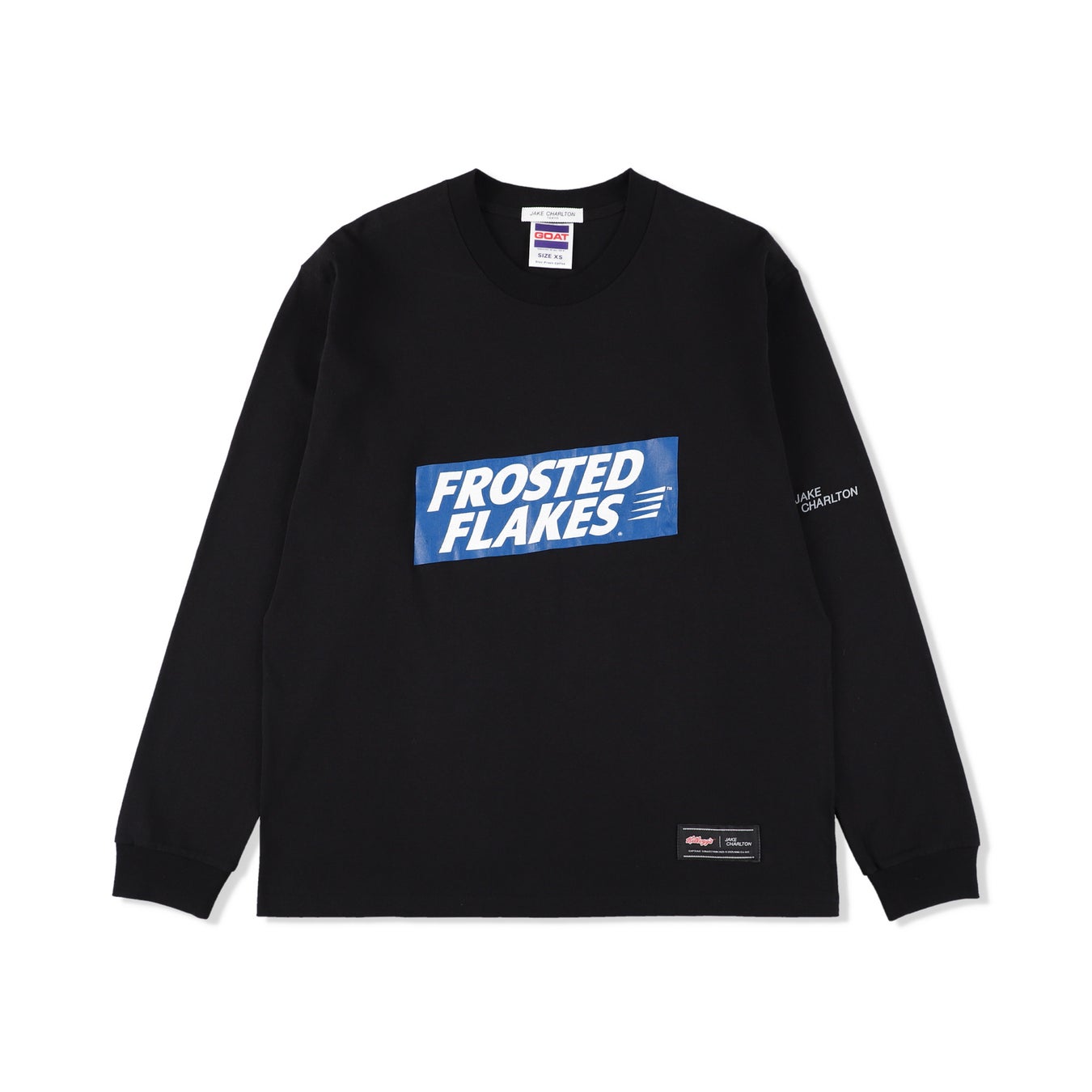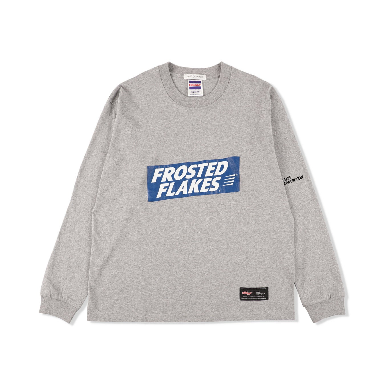 ゆったりとしたボクシーシルエットのロングTシャツ。GOATボディを採用。Kellogg'sシリアルの定番「FROSTED FLAKES」のレトロなロゴをクラックプリントで表現しています。