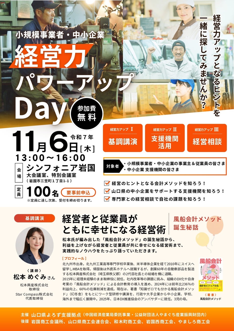 11/6(木)『経営力パワーアップDay』を岩国で開催~小規模事業者・中小企業・支援機関の皆さまにおくる経営支援イベント~