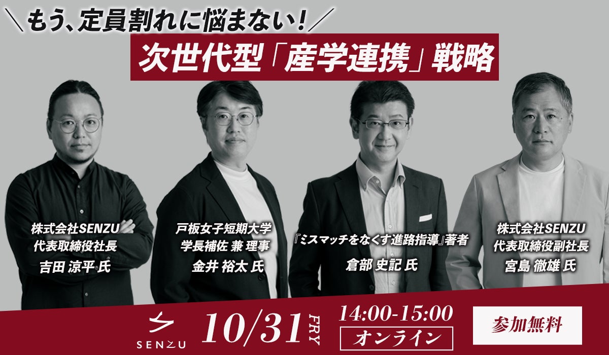 2025年9月1日に、株式会社SENZU(本社:東京都墨田区、代表取締役社長:吉田涼平)を設立いたしました。高等教育機関が持つ本来の価値を生かして、新しい「進学・学びの価値観」を創造し、誰もが誇りをもって力を発揮できる未来の実現を目指します。