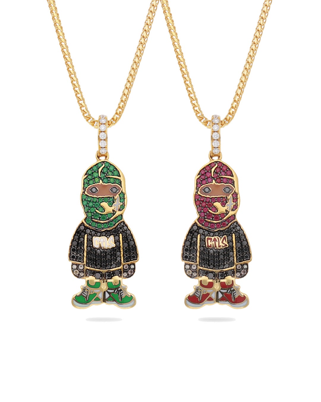 今回のコラボレーションの最大の目玉商品でもある「18K GEMSTONE NECKLACE」は、IF&COの世界クラスの技術力とブランド力を最大限に発揮したアイテム。チェーンとペンダントとその全てに18Kを使用し、さらにはホワイトダイヤモンド、ブラックダイヤモンド、ルビー、エメラルドの鉱石を余す事なく散りばめています。スニーカー部分やロゴの部分は職人による手作業で一点一点丁寧なエナメル加工で仕上げを施している超豪華なアイテム。各色5個ずつの数量限定。全てのアイテムにナンバリングが施されている世界に一点しかないアイテムです。