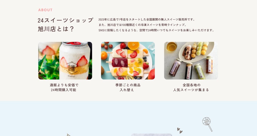 弊社が運営する「24スイーツショップ旭川店」の紹介ページも新たに追加いたしました。