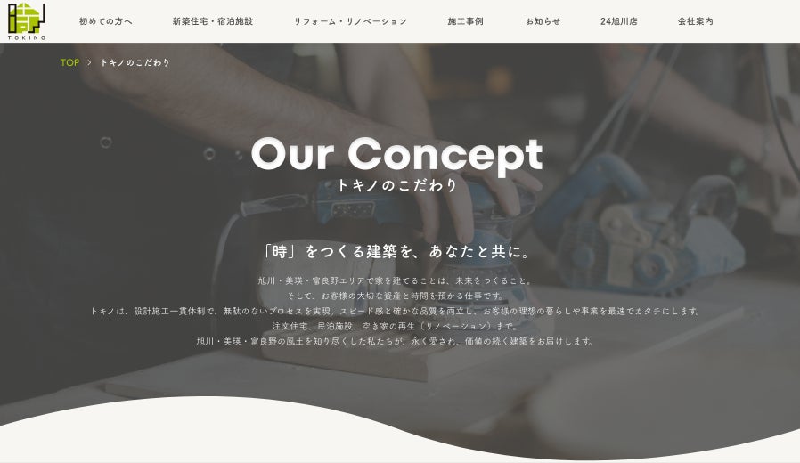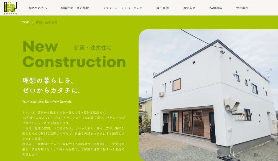 北海道旭川市・美瑛町・富良野市を中心に実績を持つ建築事務所、株式会社トキノ(代表取締役:田中 国文、本社所在地:旭川市)は、この度、ホームページのリニューアルを実施いたしました。道北・道央に「価値ある建築」を届ける弊社の魅力を、存分に知っていただける内容となりました。