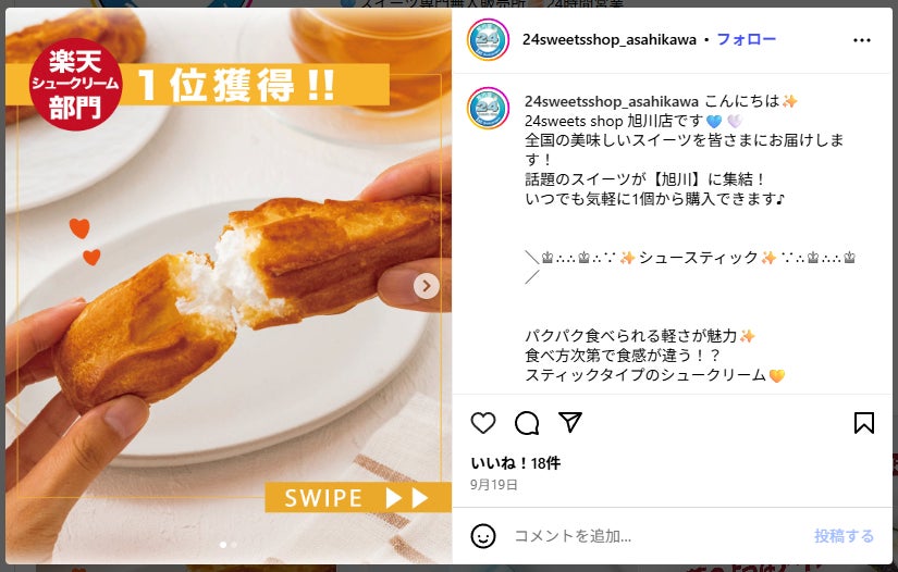 また、冷凍スイーツを堪能したいお客様へ、旭川店の最新情報は公式Instagramでゲットできます!ぜひ旭川店のアカウントをフォローして、最新のスイーツ情報をお待ちください!