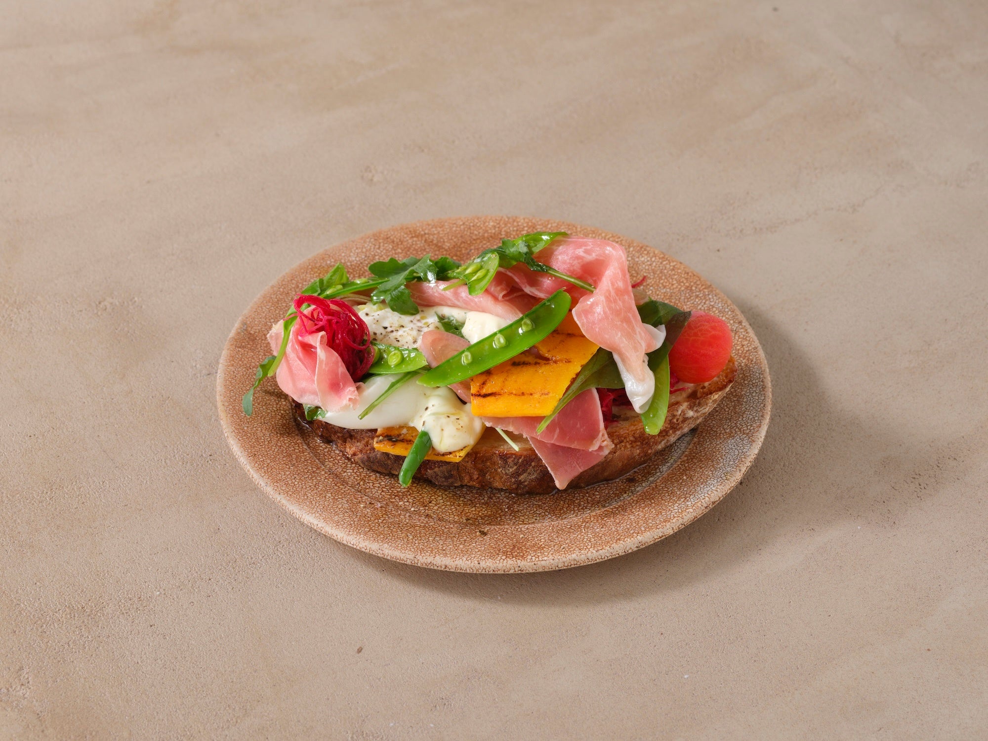 ランチのオープンサンドは、松本発クラフトコーラブランド NATURE ALCHEMYを手掛ける関島和也氏(CARPEDIEM)と井岡大空氏(SEED) がプロデュース。オリジナルのカンパーニュに信州野菜&ブッラータチーズとプロシュートをのせたAzumino Harvest、ロースハムとマスタード Honey Must Harmony、サーモン&アボカドのTHE TOOなど、オープンサンドを絵画のように仕立てています。