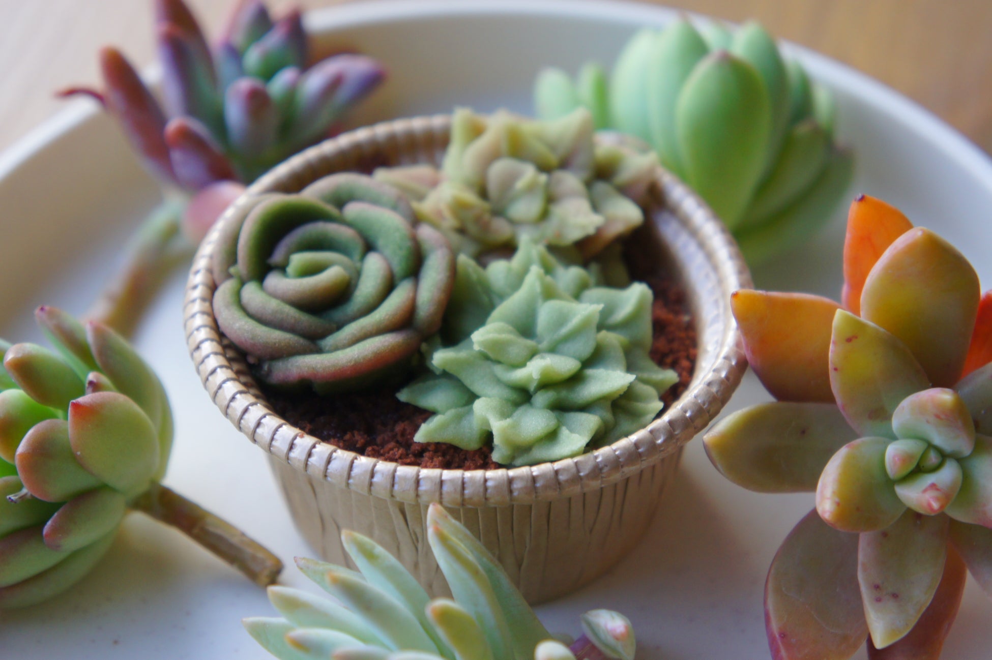 多肉植物そっくりの見た目と繊細な細工が「本当に食べられるの?」と話題に。白あん×マスカルポーネ×コーヒースポンジで仕立てたティラミス風スイーツ。